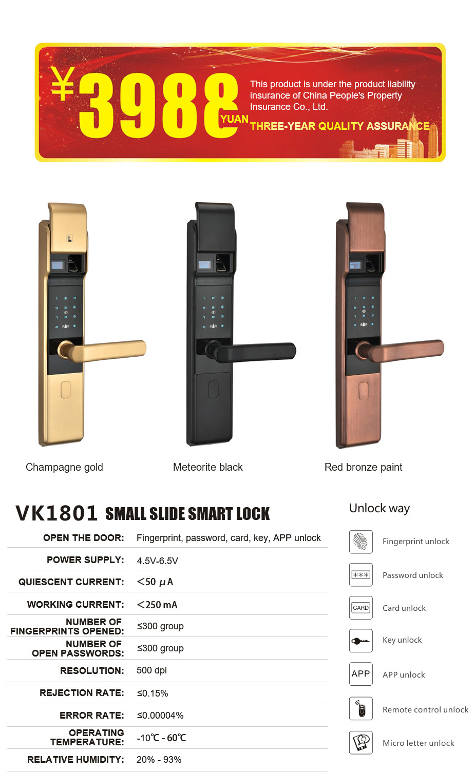 VK1801 small slide smart lock